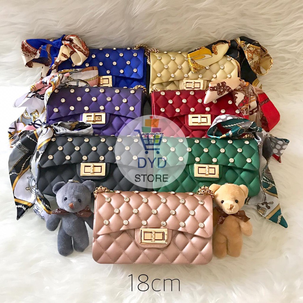 Jual Tas Cha Nel Diamond Jelly Matte Free Syal Dan Boneka