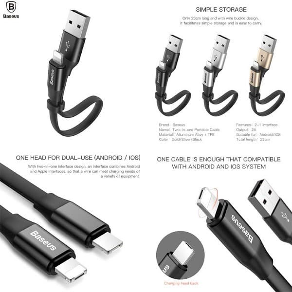 BASEUS ORIGINAL Kabel Data Powerbank Nimble Lightning USB 23CM For
