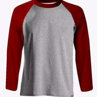 Jual Kaos Raglan Polos Lengan Panjang Ukuran XL Warna Abu Misty Merah