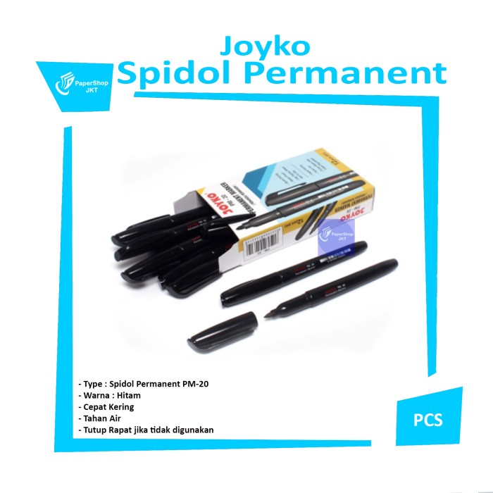 Jual Spidol Permanent Marker Joyko PM-20 Hitam Indonesia|Shopee Indonesia