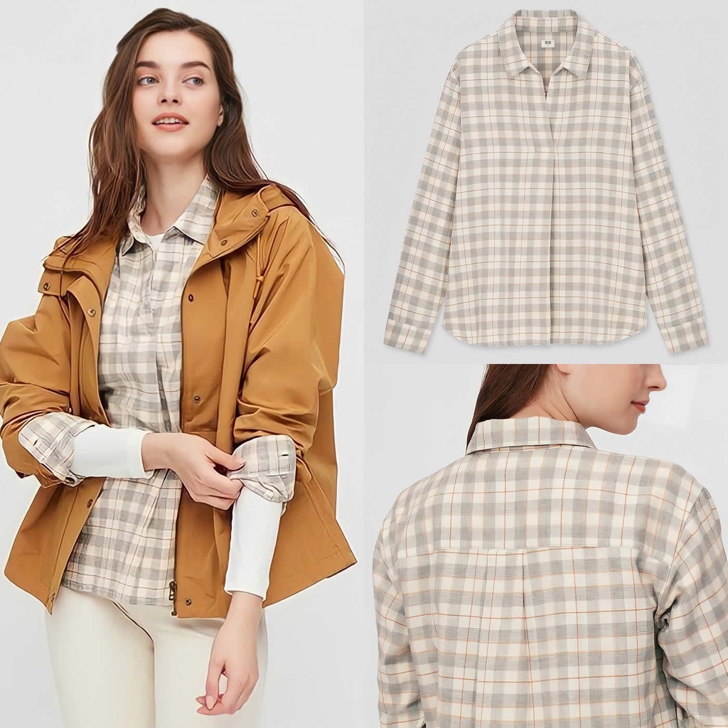 Jual Uniqlo Women Flannel Shirt Plaid Grey Cut Label Kemeja Kotak Kotak< /h3>