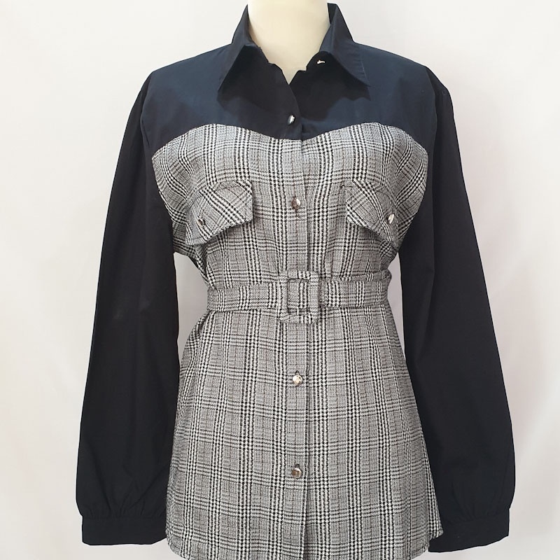 Jual White Blouse With Black Plaid | Kemeja Wanita | Branded Blouse