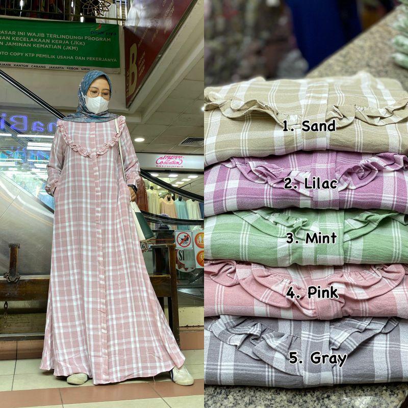 Jual Olivia Mj Miranda Plaid 3 Gamis Premium Crinkle Airflow Wanita